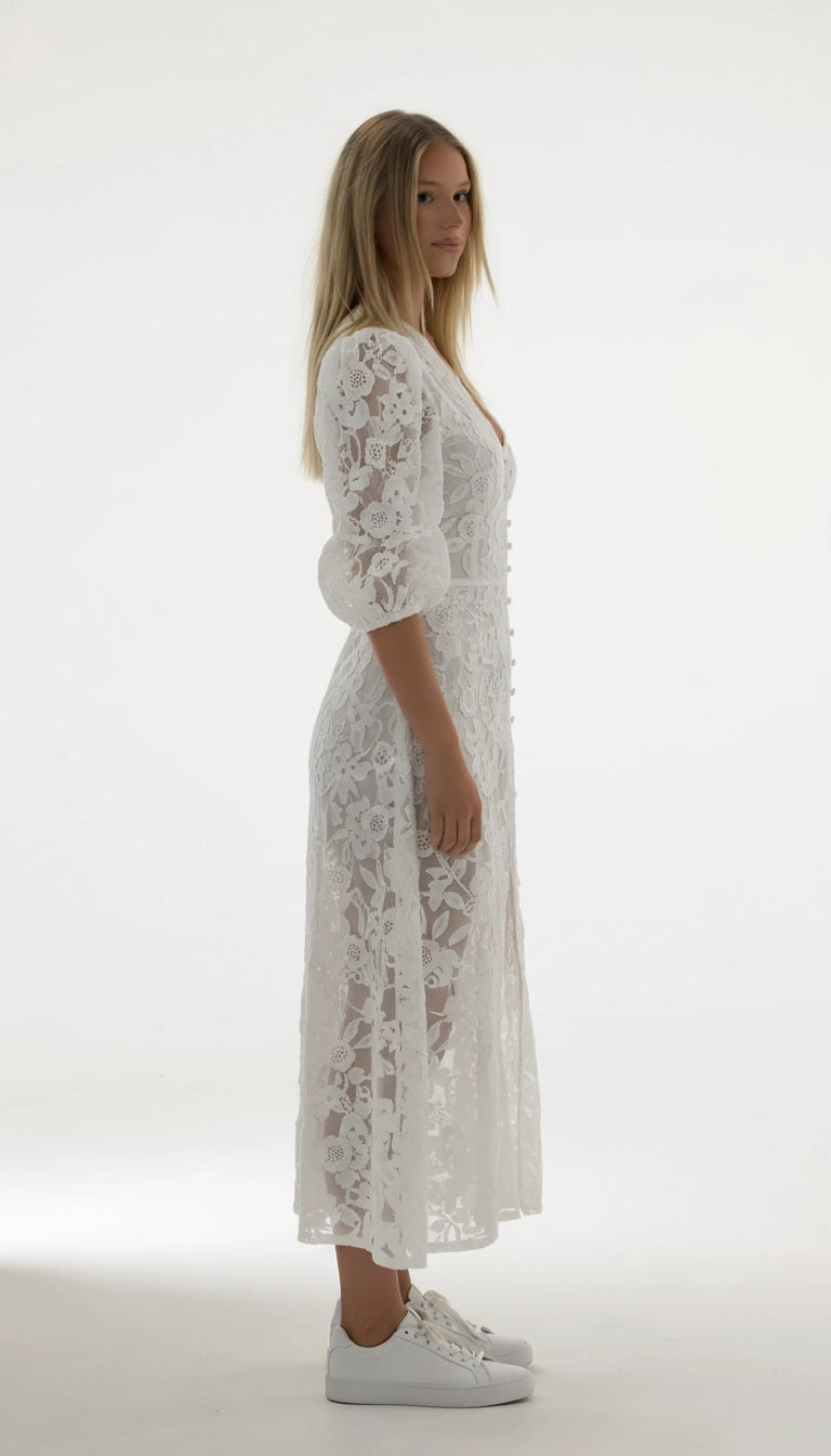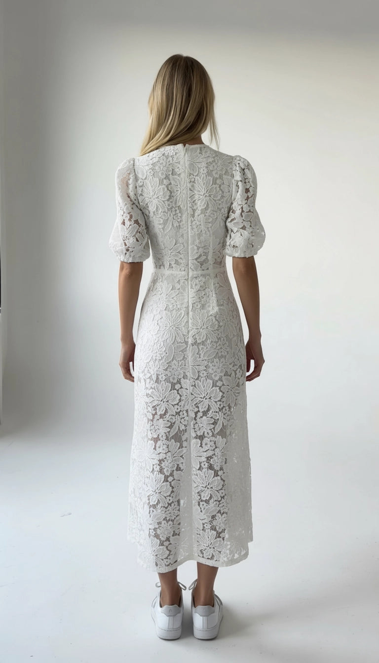 Elegant en tijdloos, een prachtige jurk met applicaties en borduurwerk van katoen.